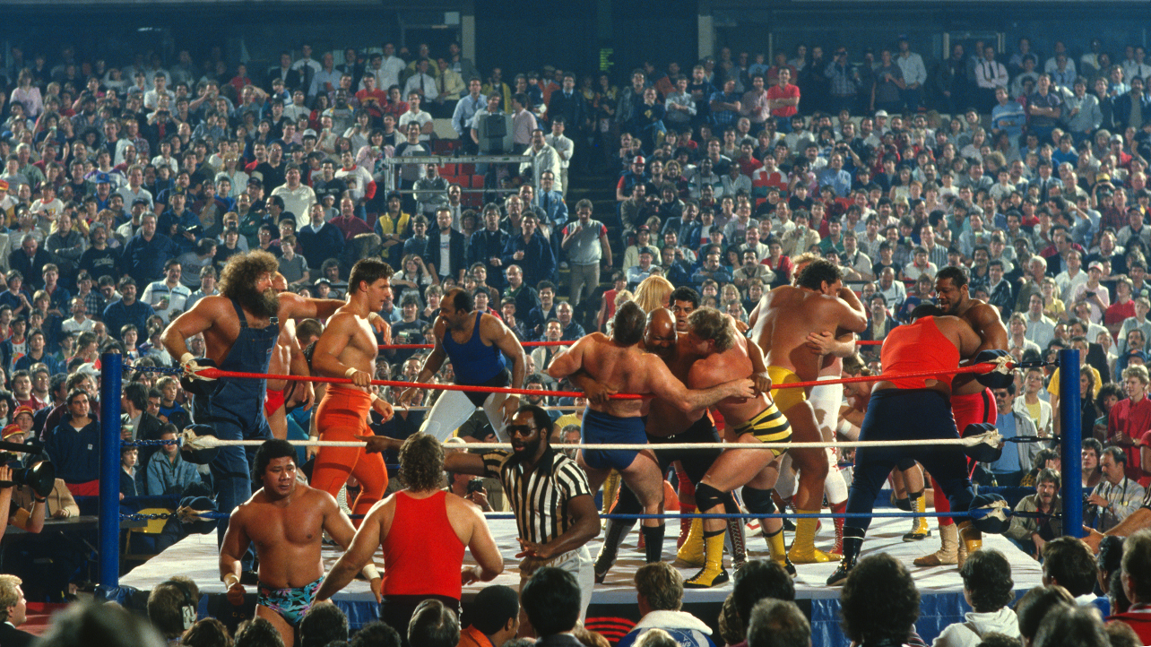 20 Man Battle Royal featuring Big John Studd, Hillbilly Jim, Bret Hart, Jim “The Anvil” Neidhart, “Jumping” Jim Brunzell, Brian Blair, Pedro Morales, Tony Atlas, Ted Arcidi, Dan Spivey, King Tonga, The Iron Sheik, Bruno Sammartino, Andre The Giant & 6 NFL players.